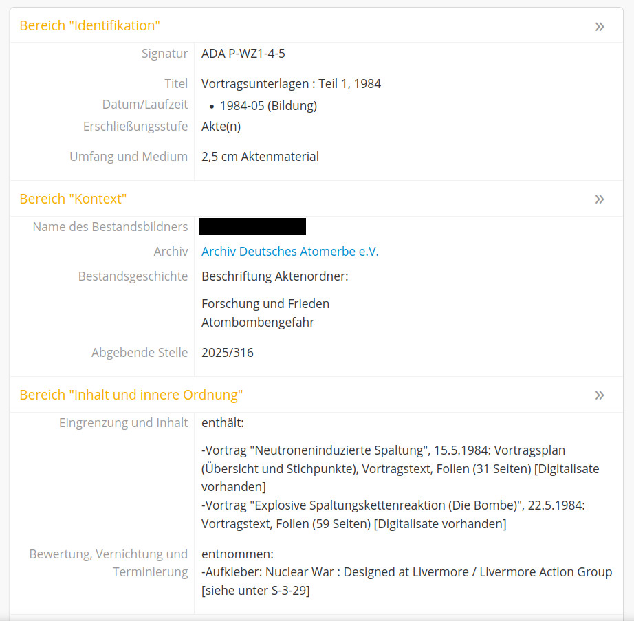 Praxisbeispiel Archiv Deutsches Atomerbe: